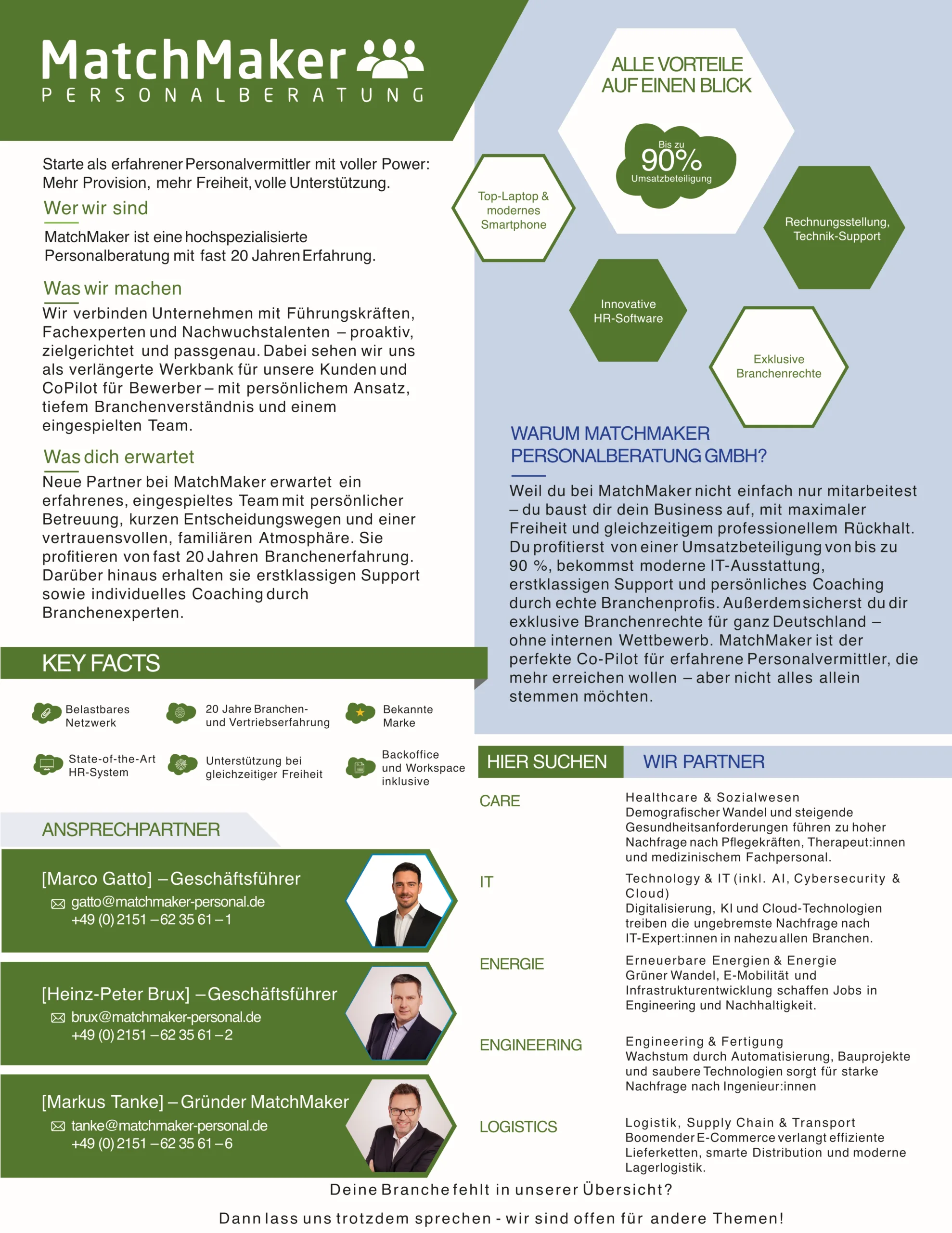 Informieren Sie sich jetzt über Ihre Möglichkeiten und starten Sie Ihre Partnerschaft mit Matchmaker.